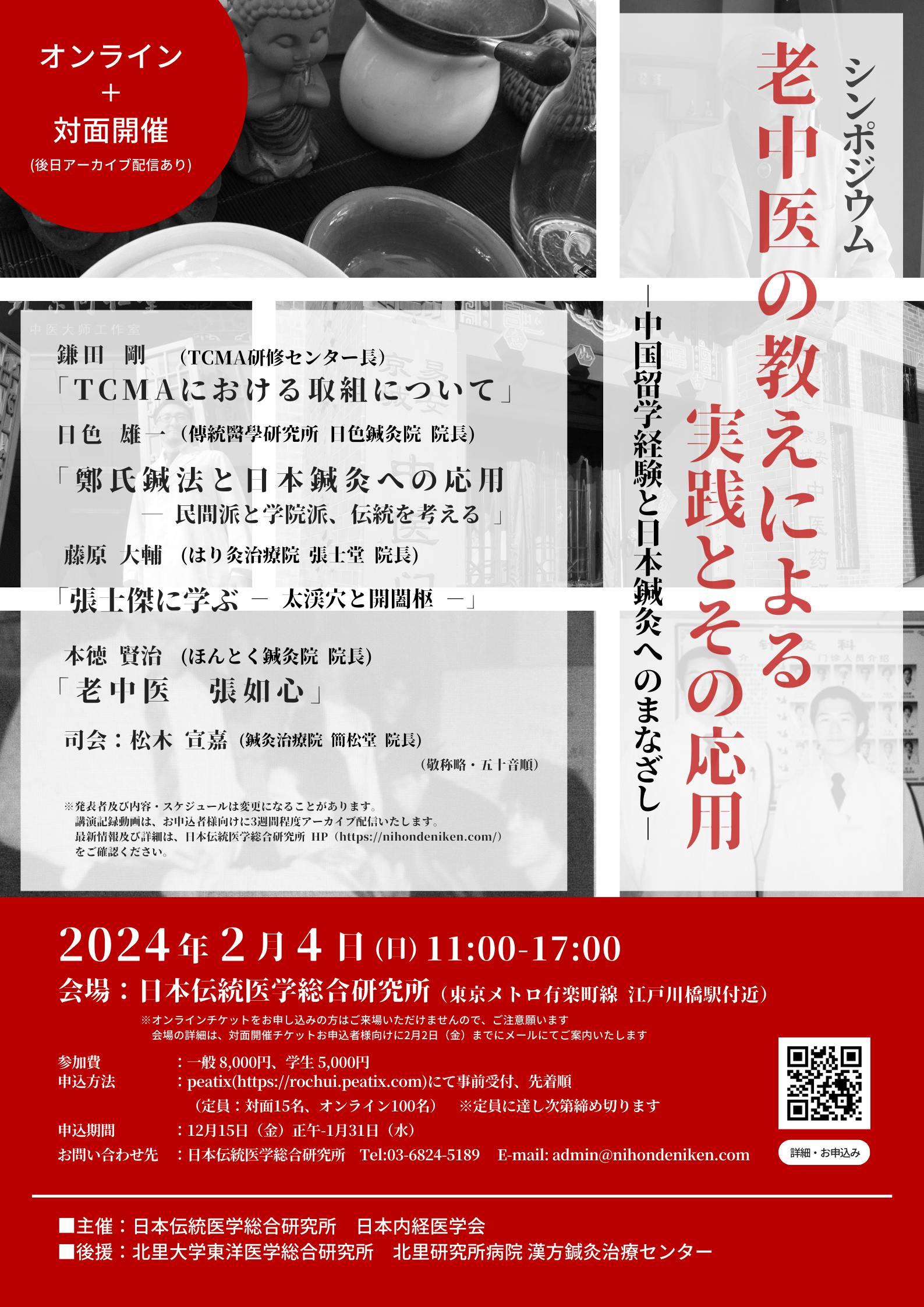 ②2024年2月4日(日) 「中医の教えによる実践とその応用―中国留学経験と日本鍼灸へのまなざし―」シンポジウム