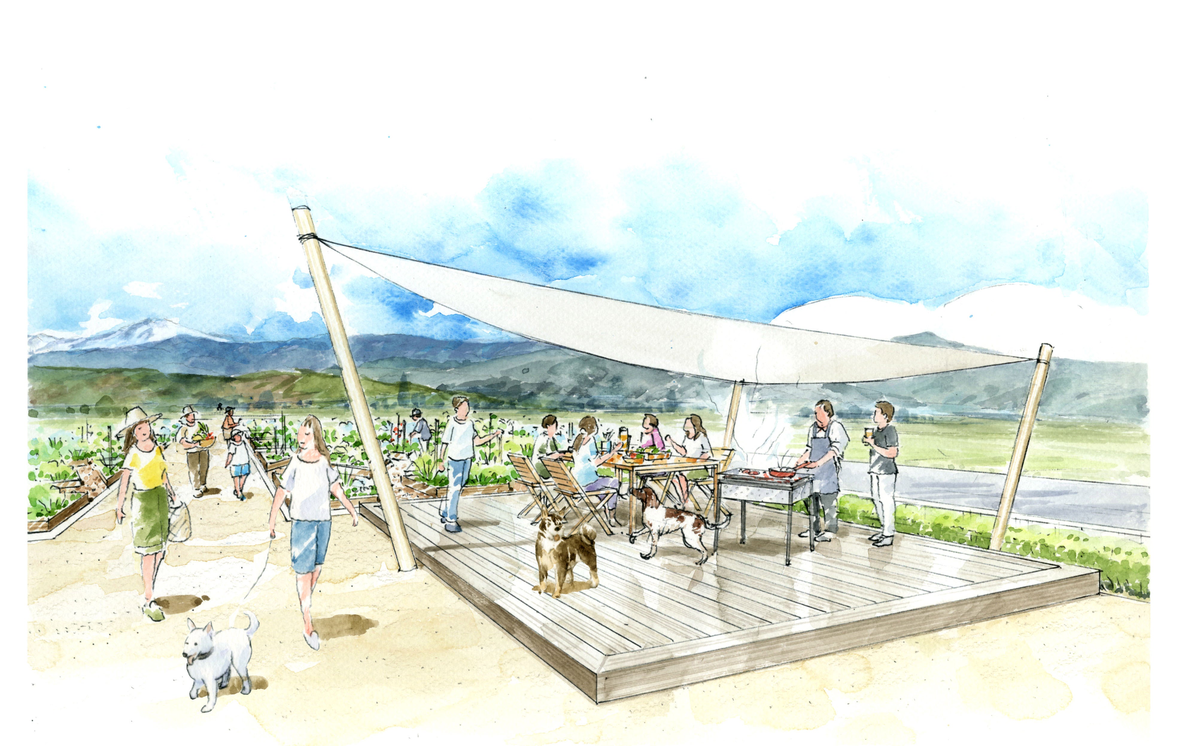 ワンちゃんたちが自由に駆け回れるドッグラン、「Healthian-wood」のレストランや宿泊者のBBQの食材となる野菜を育てる畑、そしてBBQ施設を整備する費用の一部をクラウドファンディングいたします。