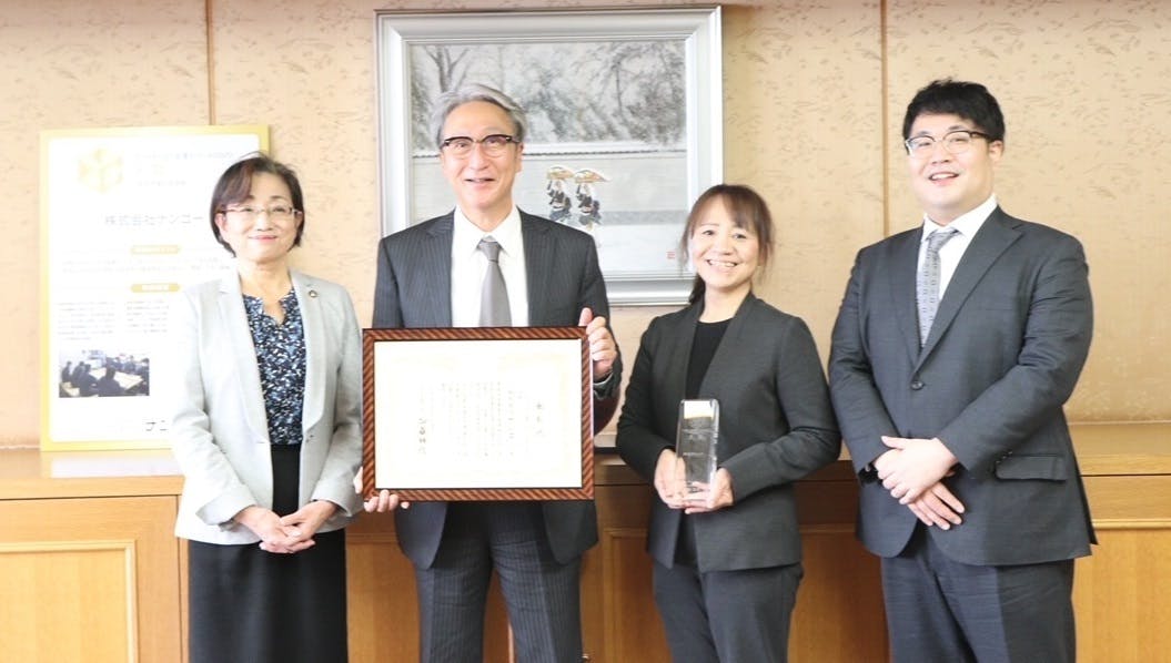 この写真は、宇治市長様へ受賞のご報告に伺った時の写真です。