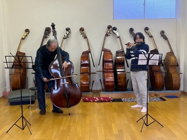 ■分解できる漆のコントラバス+龍笛の演奏パフォーマンス