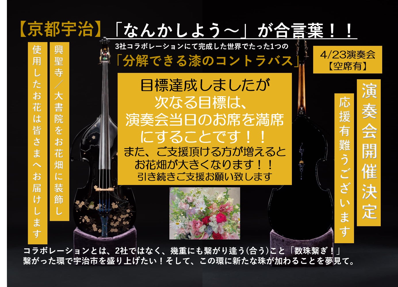 All-or-nothingでのチャレンジ!無事目標金額達成し、お披露目&演奏会の【開催決定】に伴い準備を着々と整えております!!