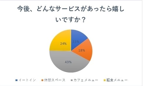 この表は、昨年12月に店頭で実施したアンケートの集計結果の一部です。主に陸前高田市と、両隣の大船渡市、気仙沼市からいらっしゃったお客様が対象でした。「今後あったら嬉しいサービス」では、カフェメニュー、イートインスペースなど、「店内でゆっくりくつろげる空間」を望む声が多かったです。