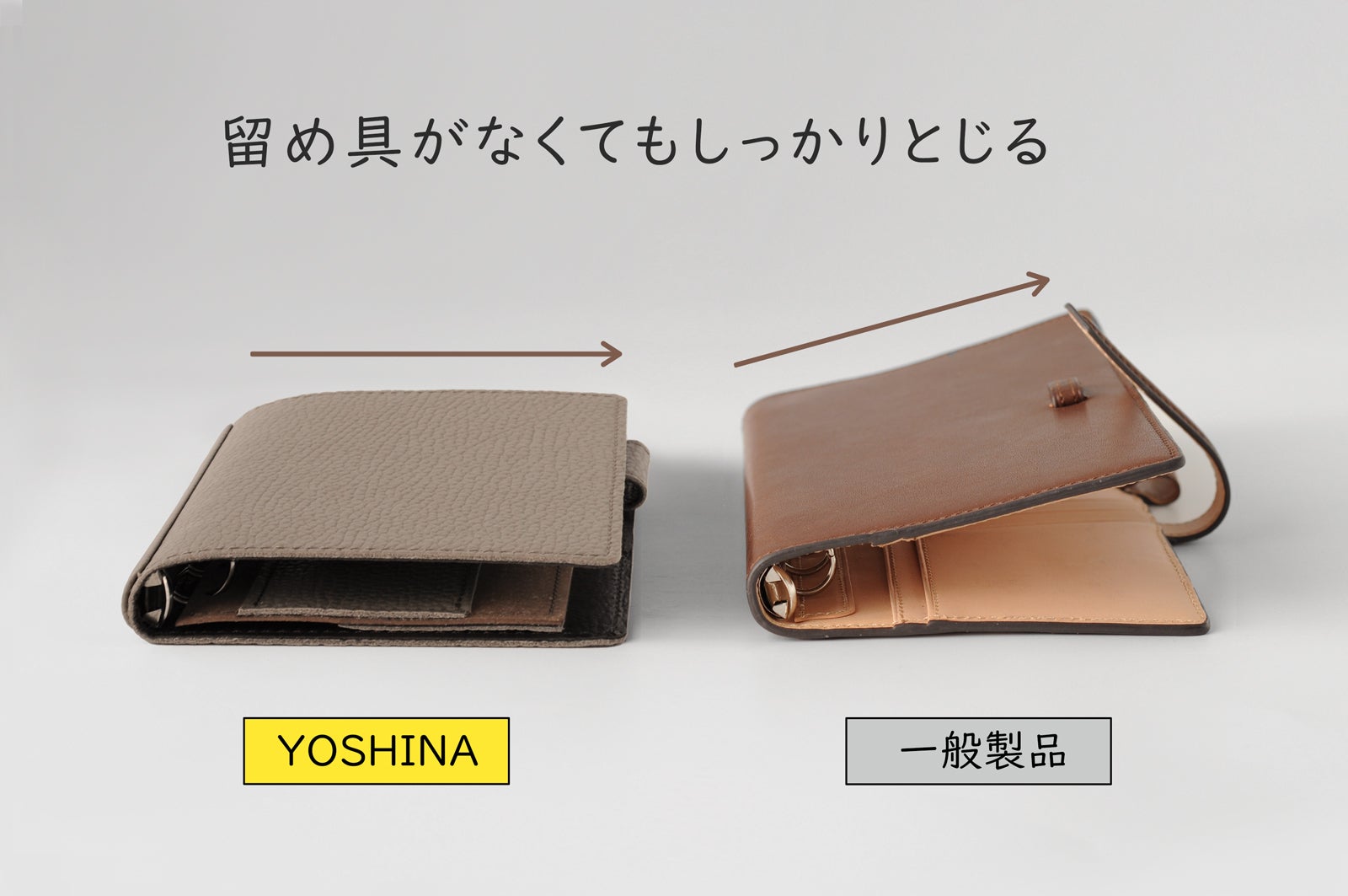 YOSHINAは社内スタッフを含め、長年システム手帳愛用者の声を参考にし、「シンプルが一番!」との考えにたどり着き、オリジナルのシステム手帳を創り上げました。