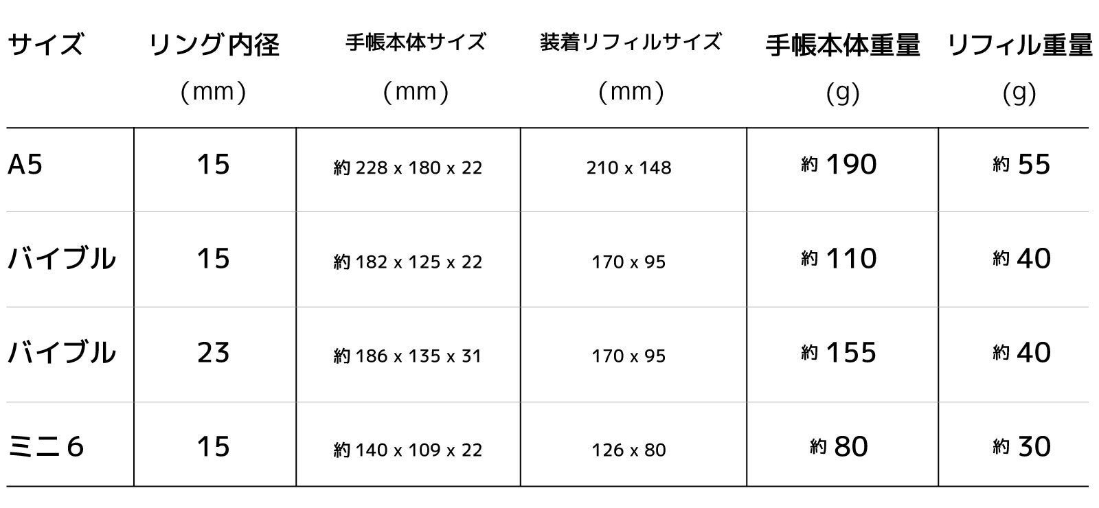 ※システム手帳のリング径は「内径」で表示しております。