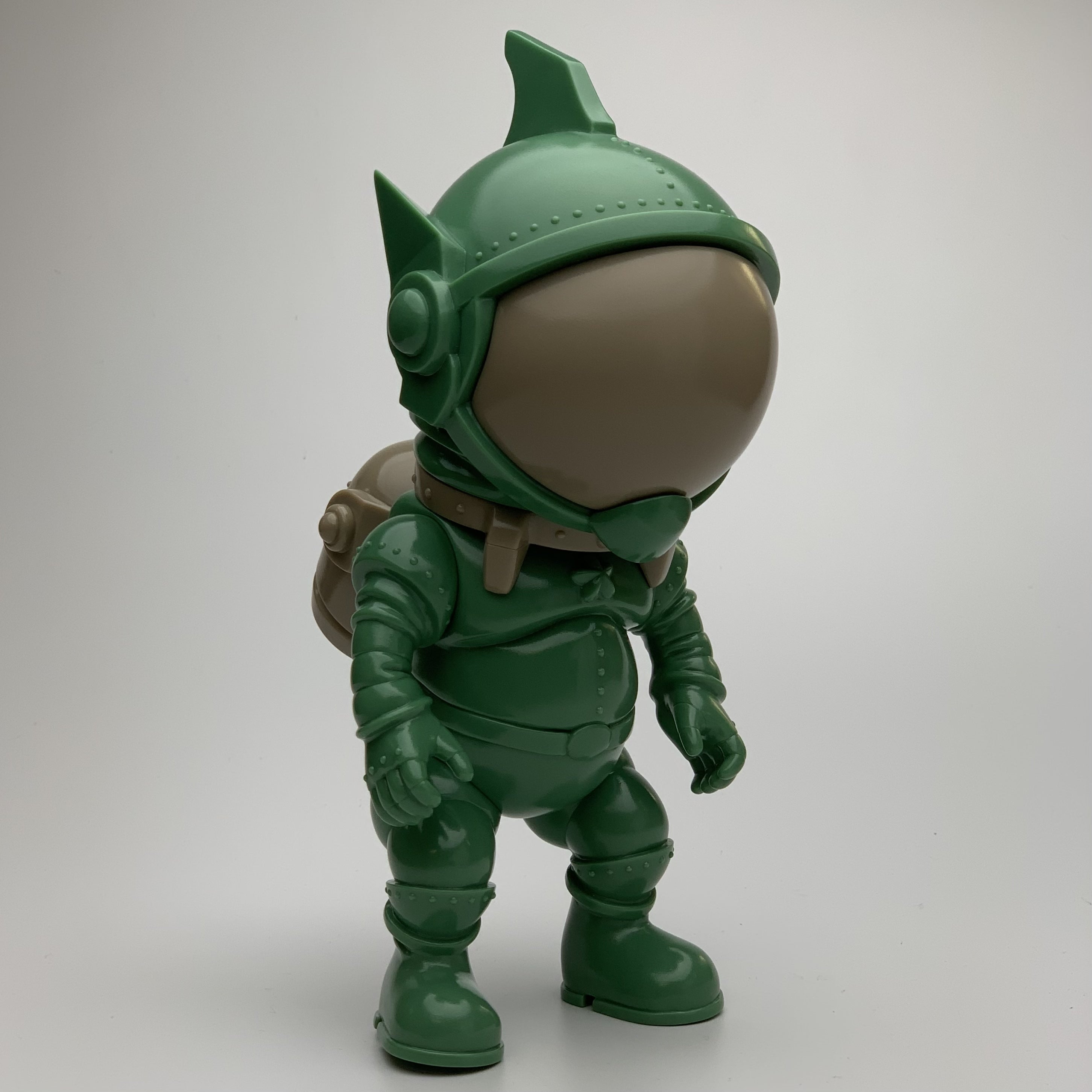 まずわ、試し抜き段階なので材料はとりあえずの色です。本成形はヘルメットのガラス面は『クリア』、ボディは『蓄光』となります。見る限り大きなトラブルなく、ひと安心です。今回のテストショットに点数をつけるなら、100点中『200点』です。完璧です。