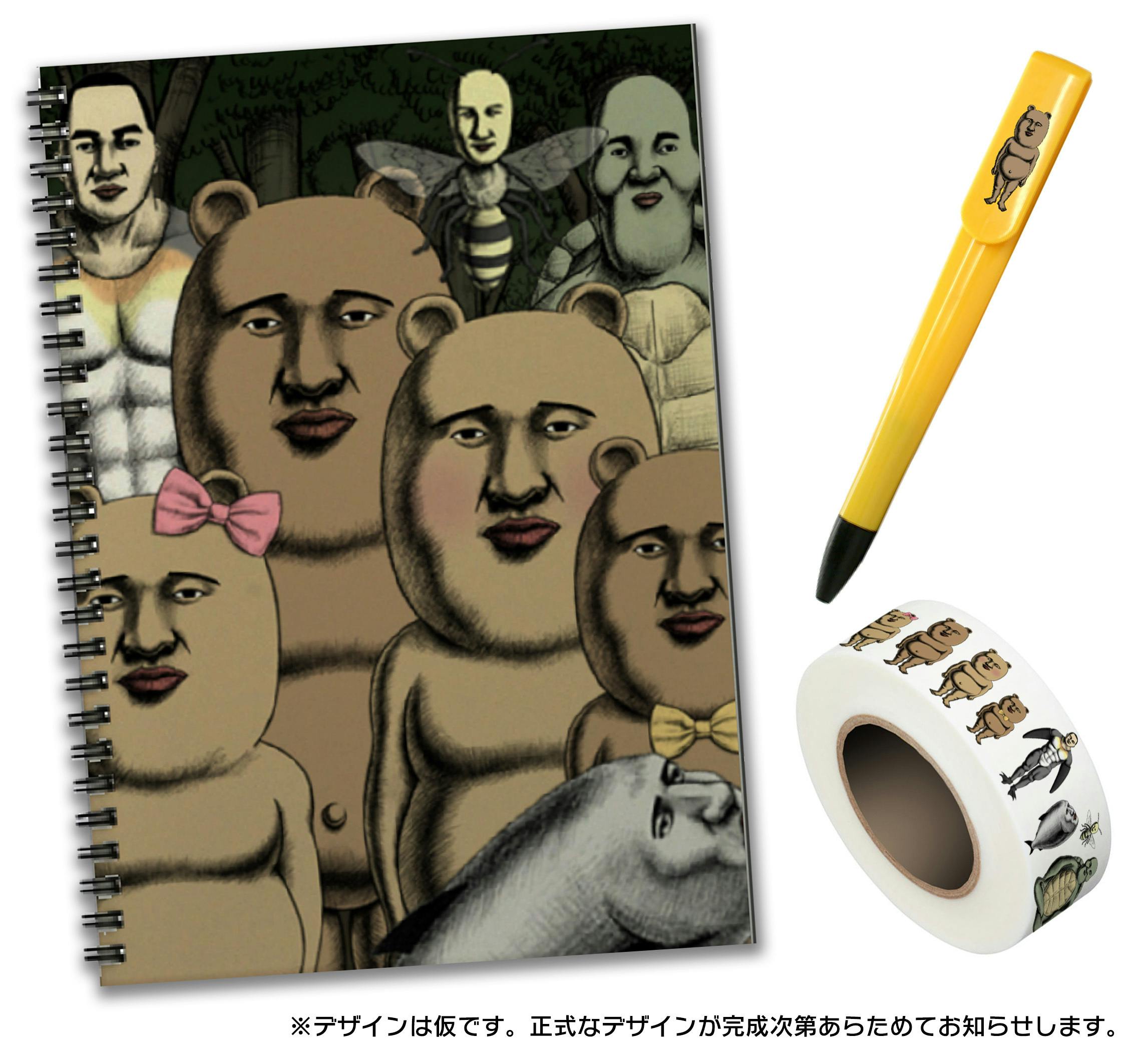 ・森の動物たちが全員集合したかわいいリングノートと、ボールペン、テープのセットです。