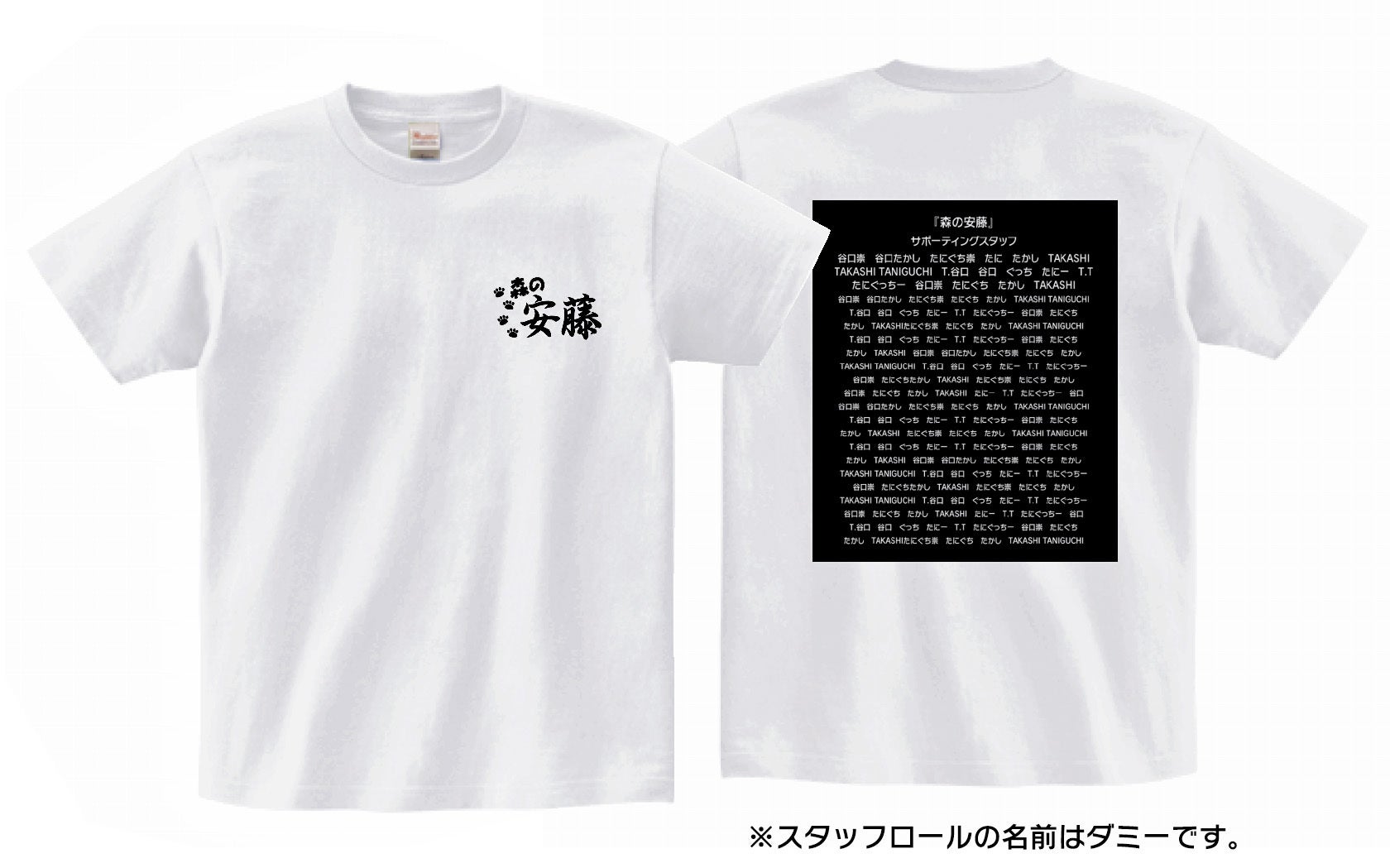 ※このコースには「(B)応援セット」は付きませんので、このTシャツのエンドロールにお名前を掲載するには、別途、お名前が掲載されるリターンを併せてご支援ください。