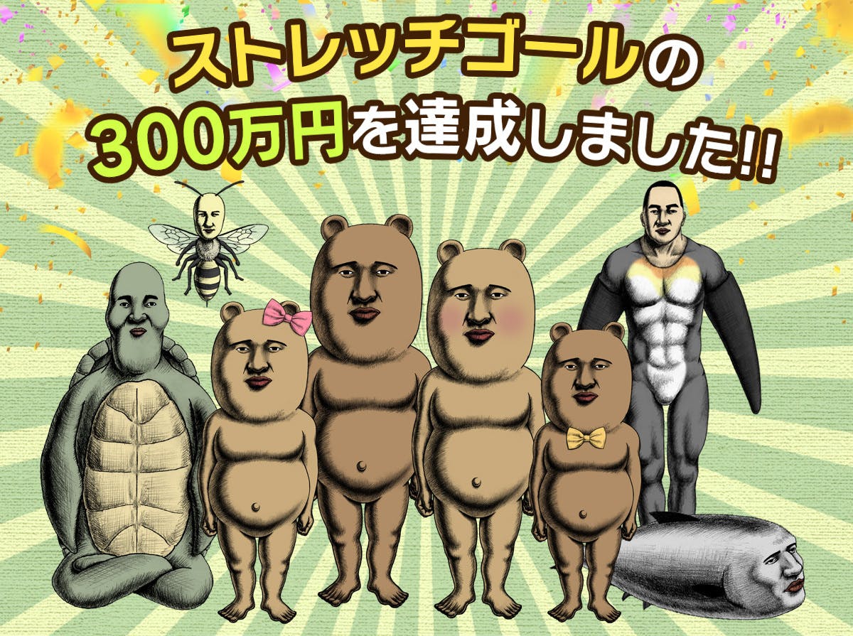 たくさんの温かいご支援をいただきまして、当初の目標200万円、新たに設定させていただいたストレッチゴール300万円に続き、2つめのストレッチゴール400万円も達成いたしました。誠にありがとうございます。