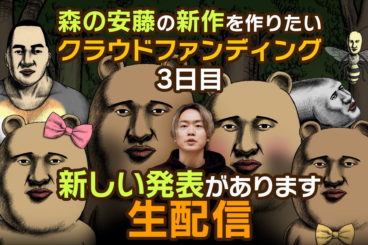 皆さまからのご支援が95%を達成しまして、森の安藤の新作を作らせていただけるところまでもう少しとなり、17年越しの夢が現実になっていくということが本当に感無量です。現在158人の方にご支援をいただいていて、賑やかなスタッフロールを作るのが今から楽しみです。