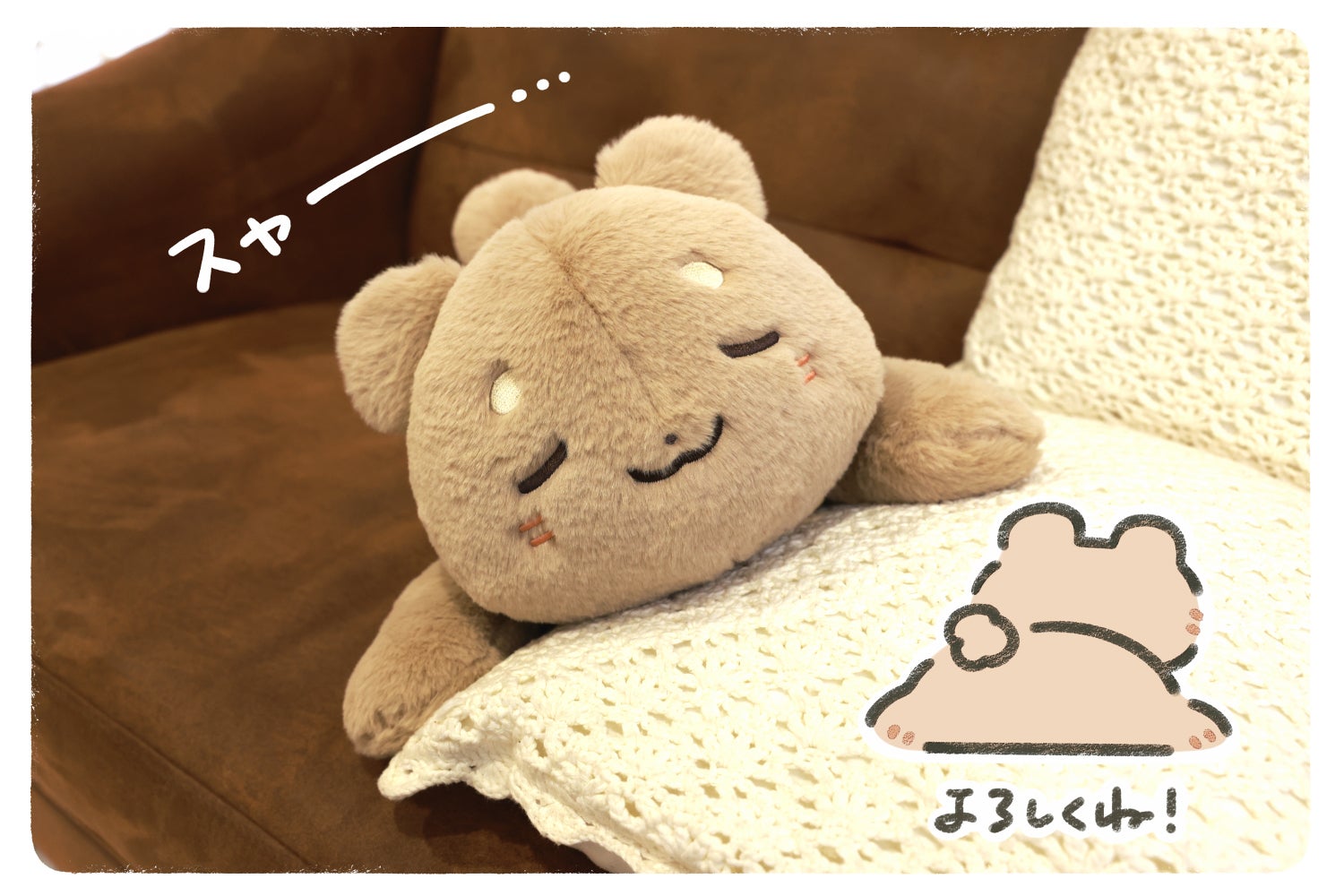 あの愛らしさはそのままに、今度は「おやすみくまちゃん」ぬいぐるみの誕生です♪