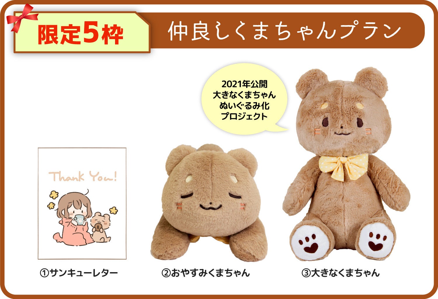 今回のくまちゃん+前回クラファンの大きなクマちゃんを同時にお迎えできる限定プランです!