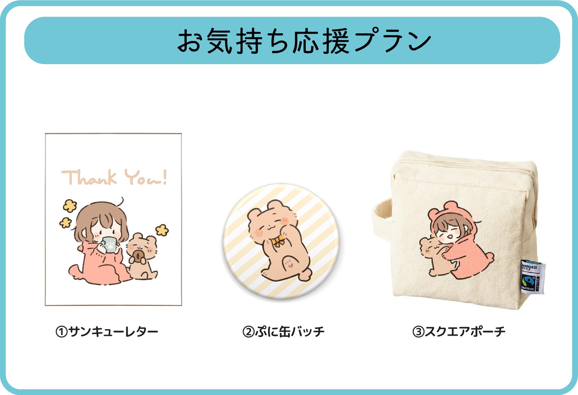 プロジェクトを応援したい方向けのプランです。日常的に使えて可愛いグッズをお届けします!