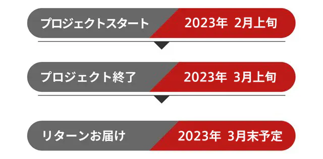 ※本文中に記載させていただいたスケジュールは、あくまでプロジェクト公開時点の予定です。クラウドファンディングの性質上、配送遅延のおそれがございます。