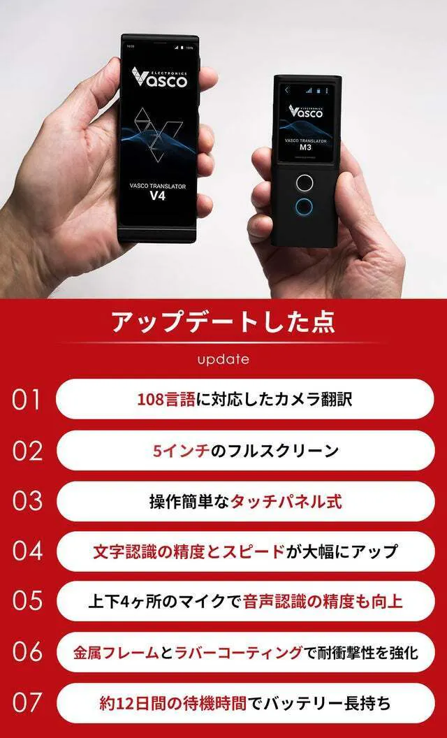 今回【Vasco Translator V4】はバッテリー機能も強化。
