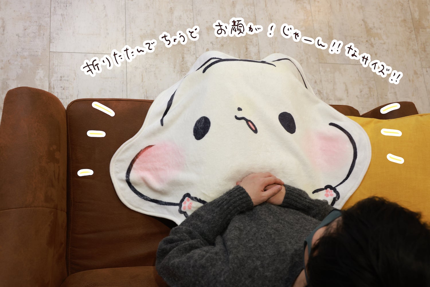 折り畳めばましまろうのお顔がちょうど見えて可愛いブランケットです。