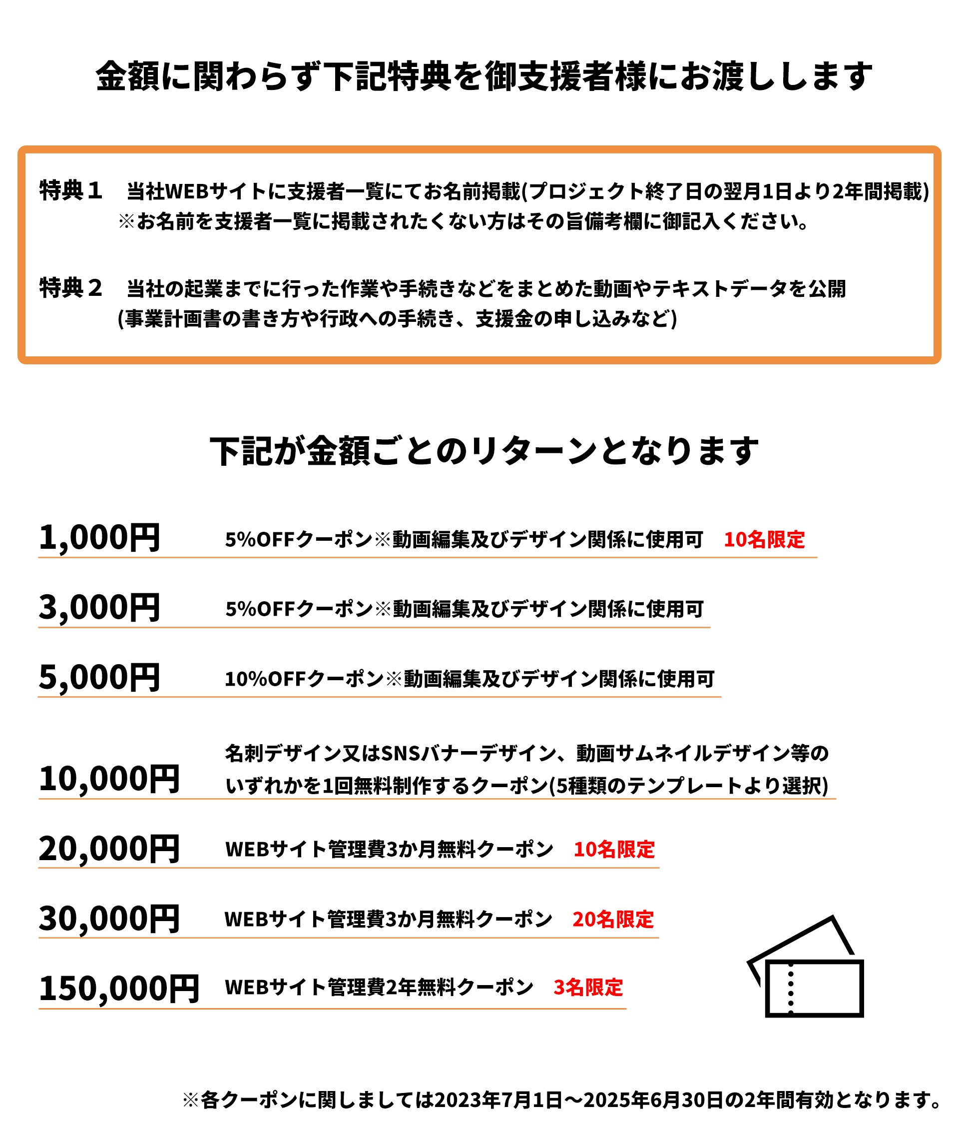 本プロジェクトはAll-in方式で実施します。目標金額に満たない場合も、計画を実行し、リターンをお届けします。
