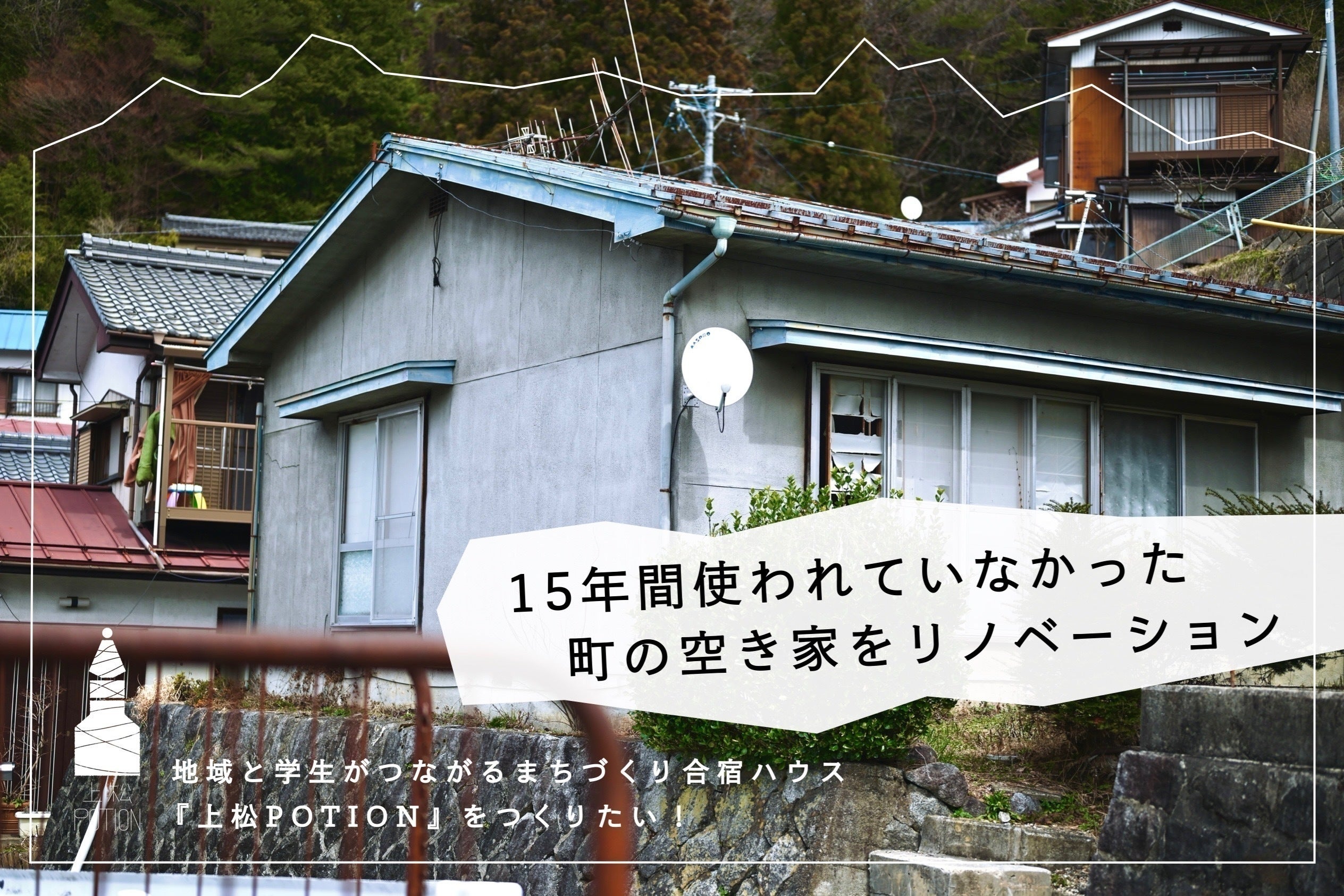 今回のプロジェクトは、上松町の空き家を改修し、上松町に来てくれる大学生をはじめとした様々な方が無料で滞在できるつながり拠点「上松POTION」をつくるために起案しました。