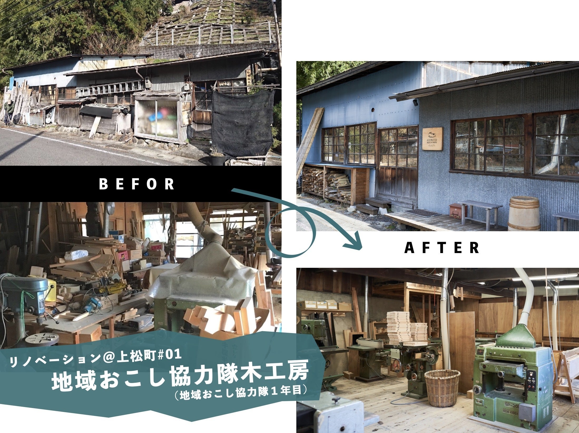 上松町の活動の中で、はじめて着手したのが、町の使われていなかった空き工房を改修した地域おこし協力隊の工房です。