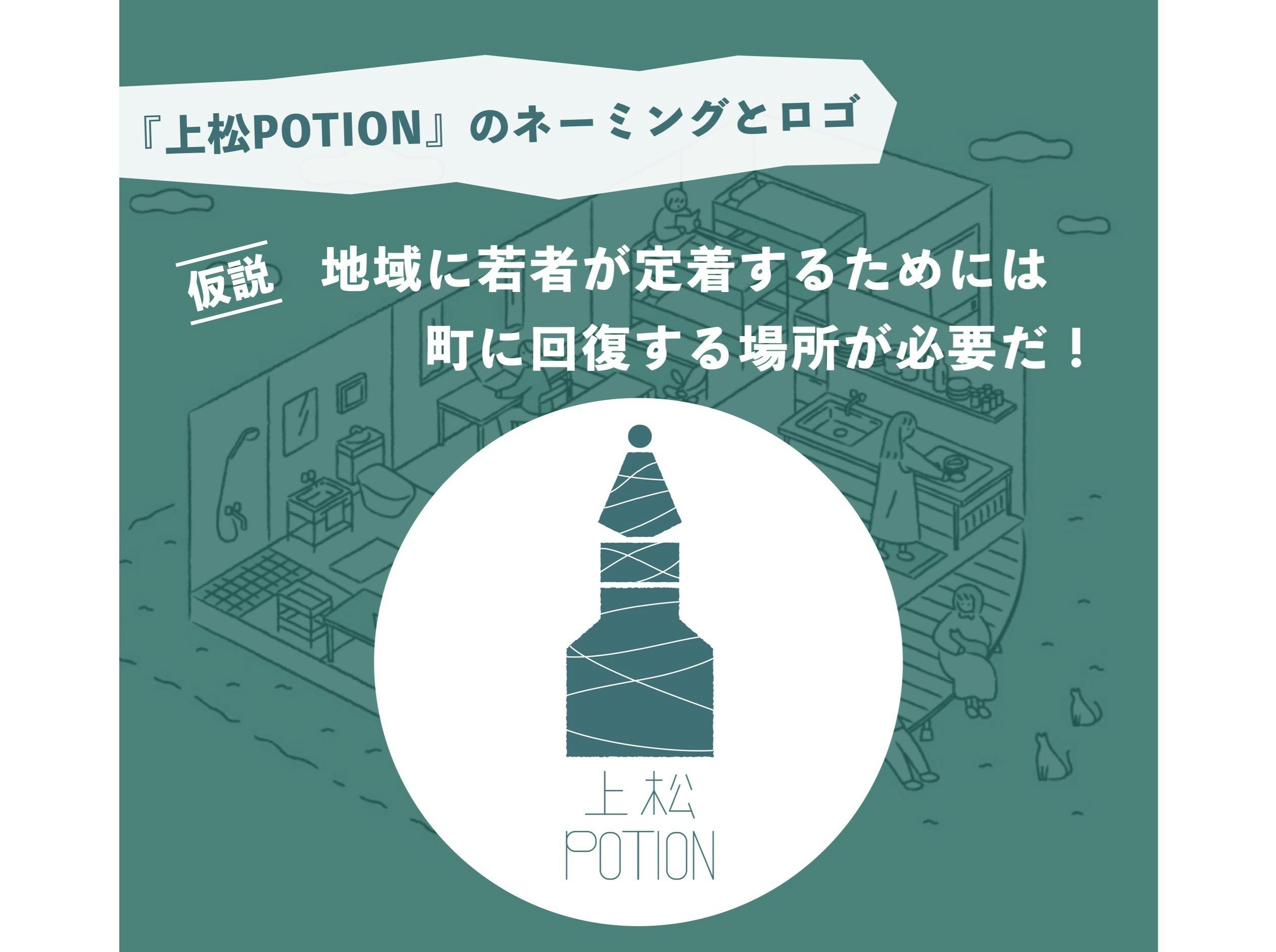 暮らしと滞在を通したつながり拠点となるこの場所は「地域に若者が定着するために上松町に回復する場が必要だ」という仮説から「上松POTION」名付け、地域と中と外の交流が生まれる場所を連想するようなロゴを制作いただきました。