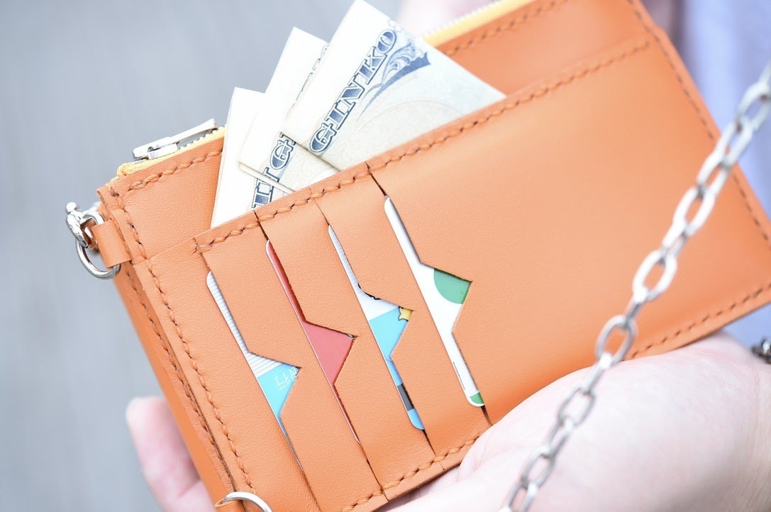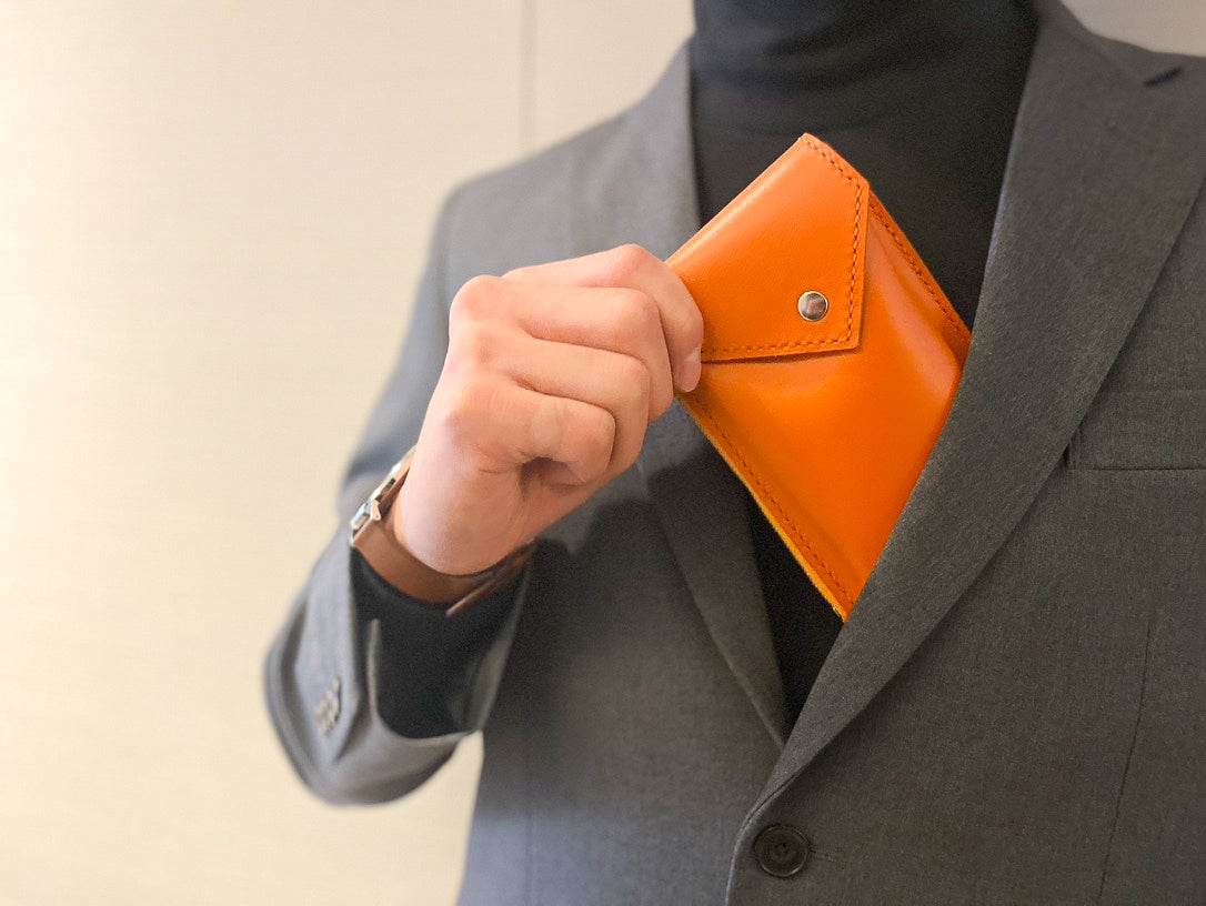財布の素材は牛革のイタリアンレザーを採用しました。高品質であり、適度な張りと鮮やかな発色が特徴です。