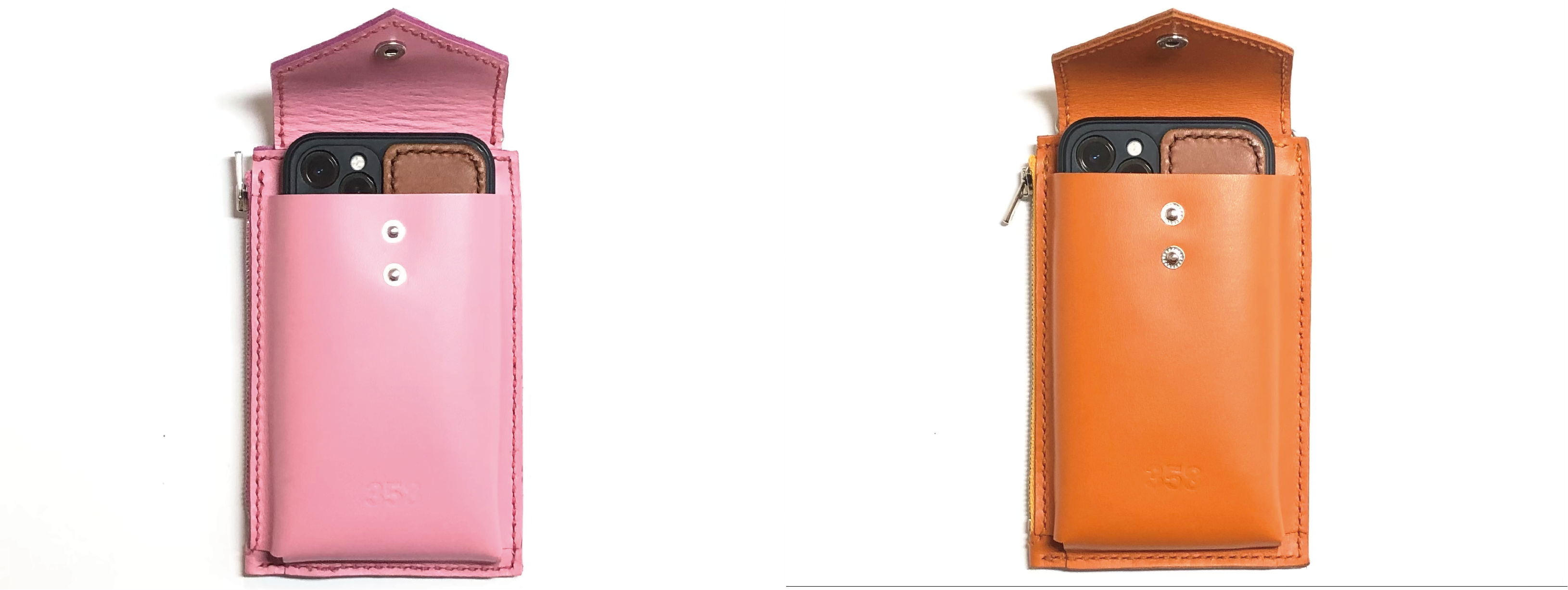 機能性においては、いちばん使用回数の多いスマホは取り出しやすさとデザイン性を追求し、前面にスマホポケットを付けました。