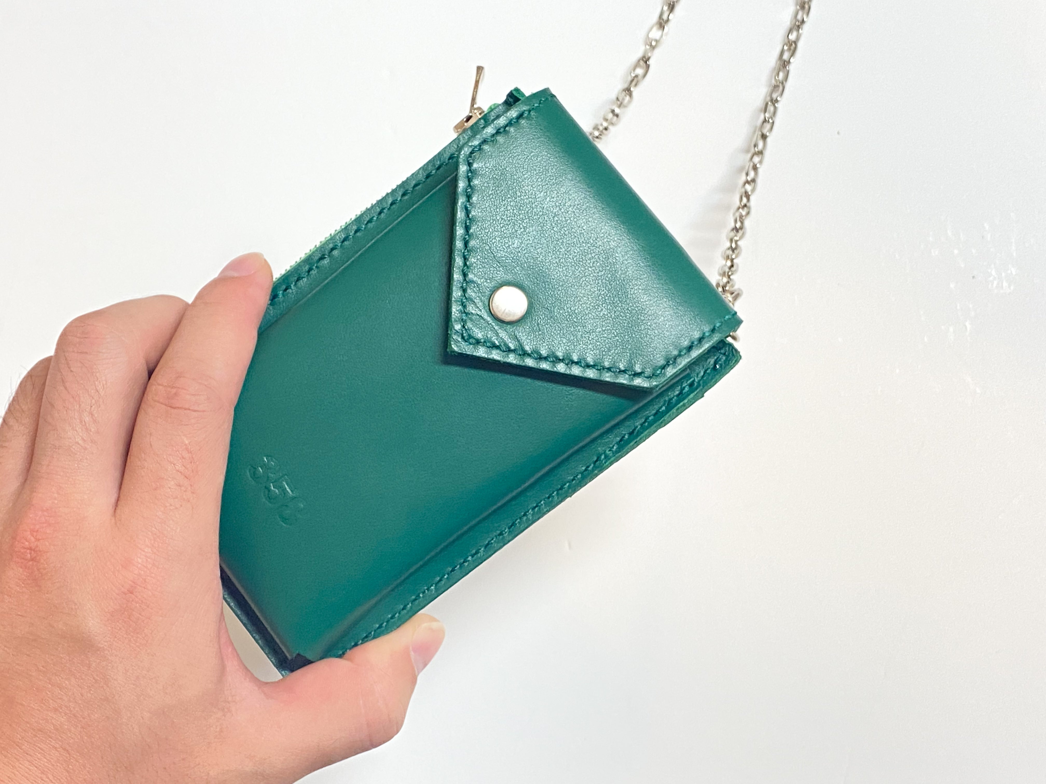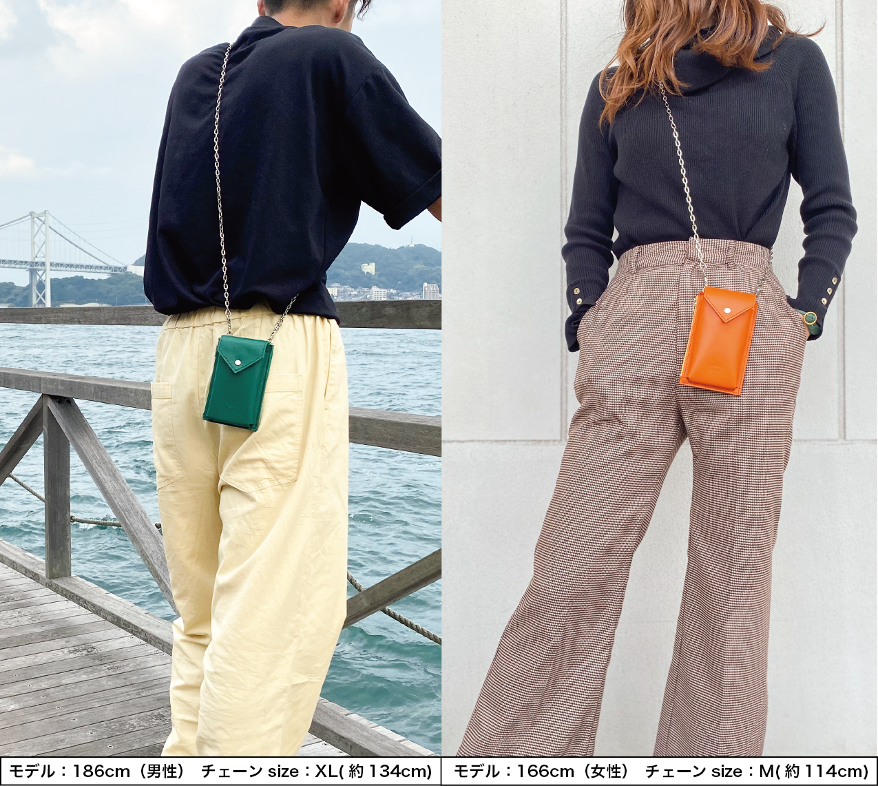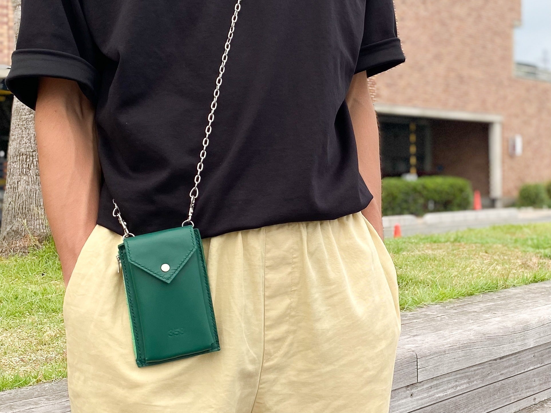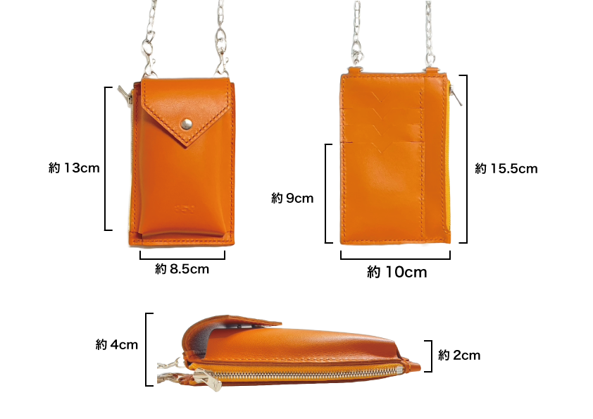 ①大容量&ショルダータイプ。スマホ、カード、お札、コイン、鍵など収納可能。