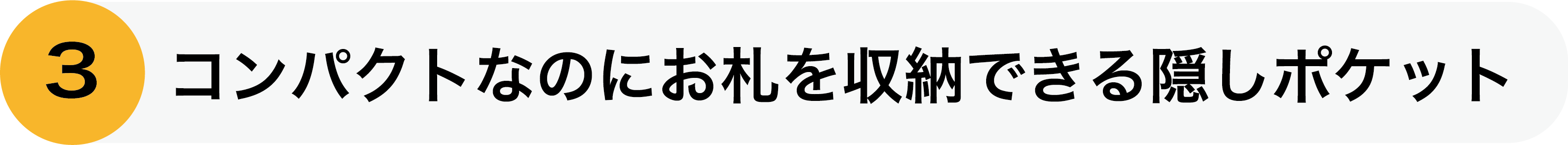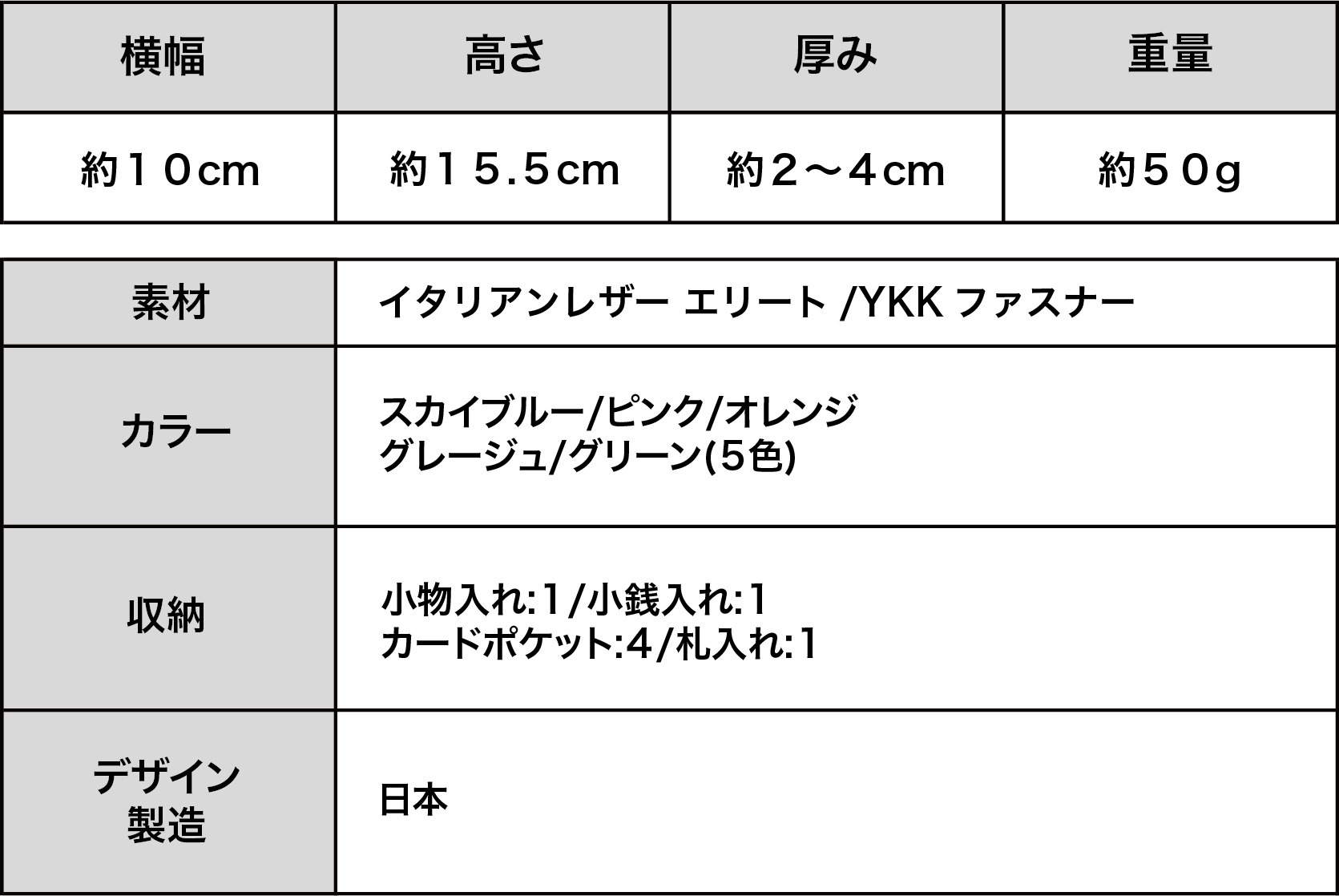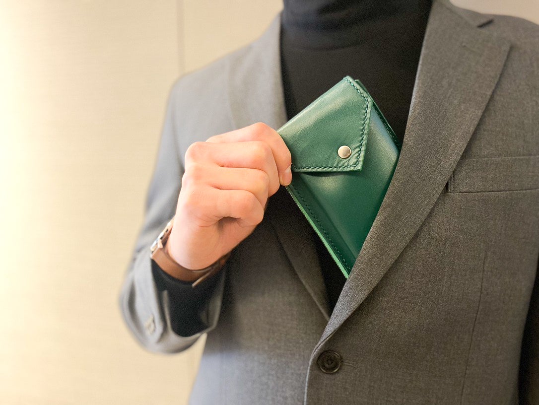 カード、お札、コイン、鍵など全ての物がコンパクトに収まる構造にし、スーツのポケットに入れても目立たない厚さにしました。