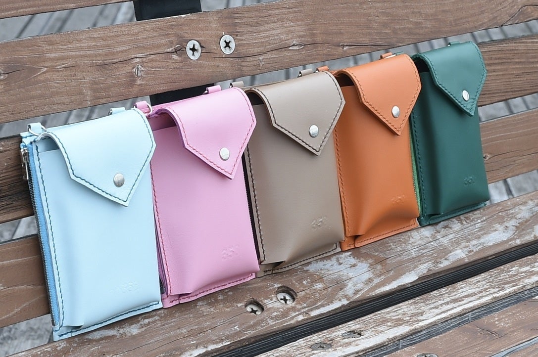機能性においては、いちばん使用回数の多いスマホは取り出しやすさとデザイン性を追求し、前面にスマホポケットを付けました。