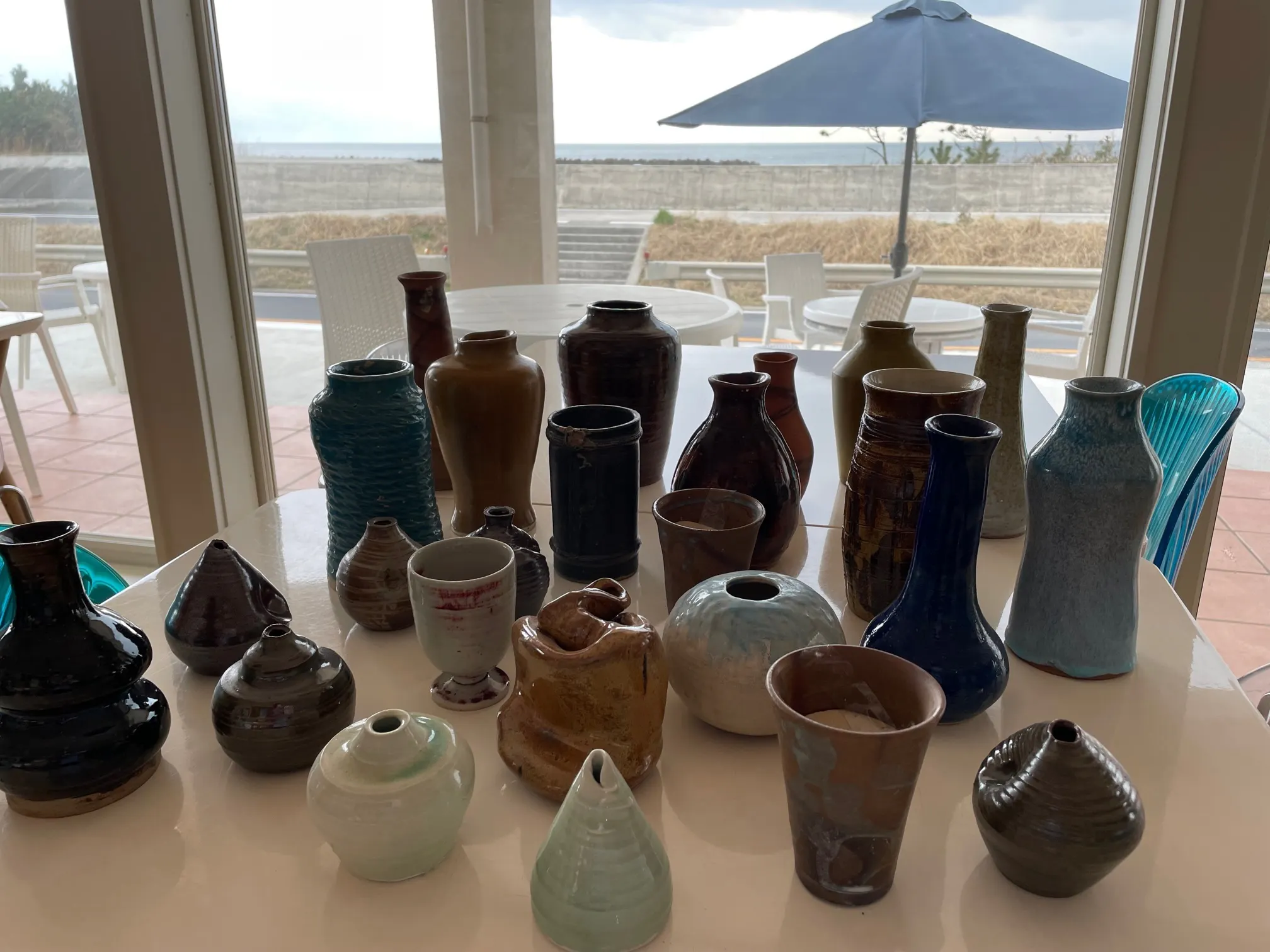 そして、たった今、旭の陶芸クラブ「窯香会」のみなさんが焼かれた花入れが届きました。
