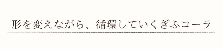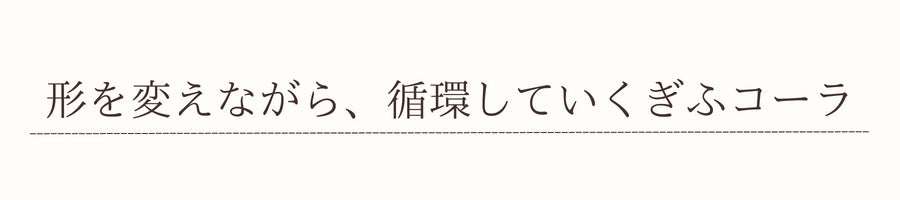 私たちが考える循環には様々な形が存在します。時に物の循環であったり、人の循環や場所の循環であったりします。私たちは岐阜の文化を形を変え、「ぎふコーラ」として若者へと循環させてきました。その循環を一時的な物で終わらず、派生させることが出来る物として縦に横に広げていきたいと思っています。