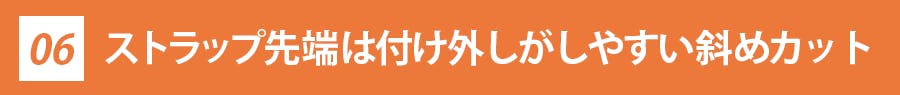 でも、ストラップ先端が斜めになっているだけでスムーズに付け外しが可能です。