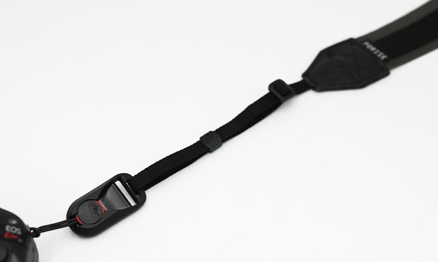 耐久性があり軽いストラップは、マグネットで簡単に着脱できる3点ハーネスを採用。