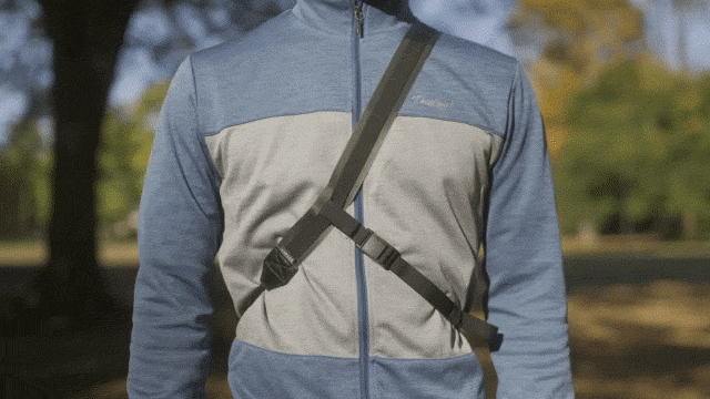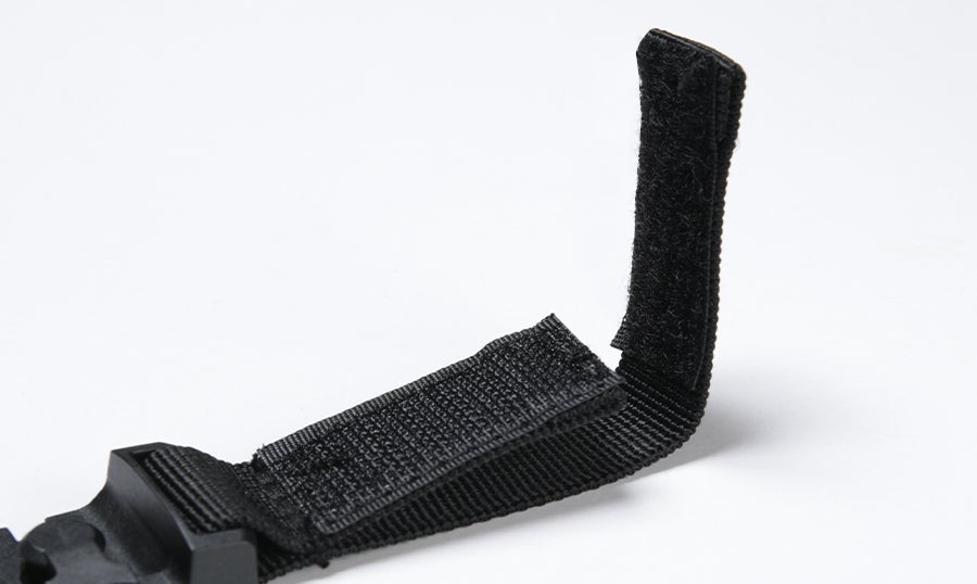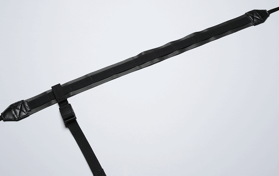 耐久性があり軽いストラップは、マグネットで簡単に着脱できる3点ハーネスを採用。
