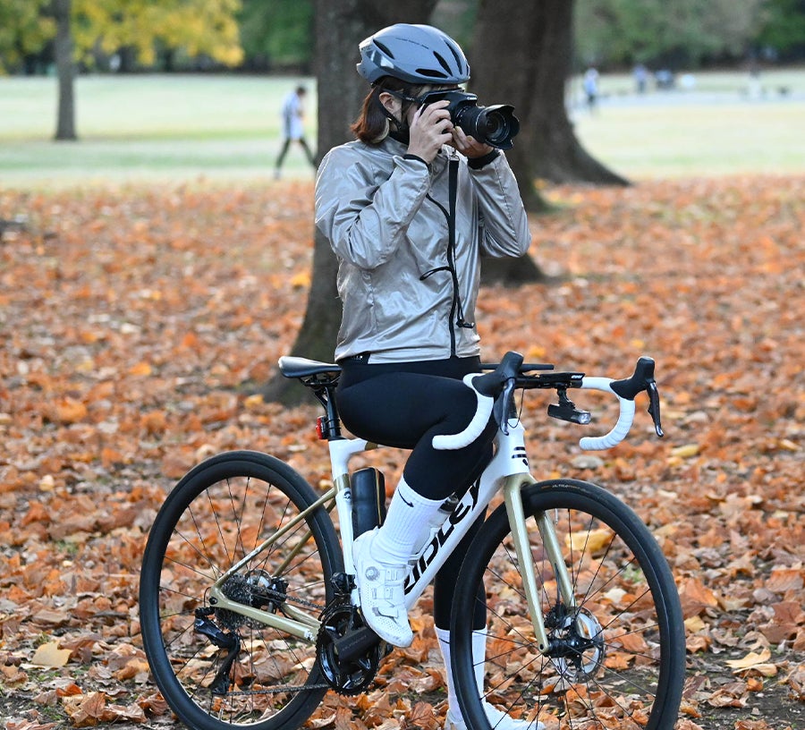 当社は各種自転車アクセサリーを扱っているだけでなく、スタッフも自転車が好きなので、ほぼ毎日乗っています。自転車に乗って撮影することも頻繁にあり、プライベートでもカメラを背負ってポタリングすることもしばしば。