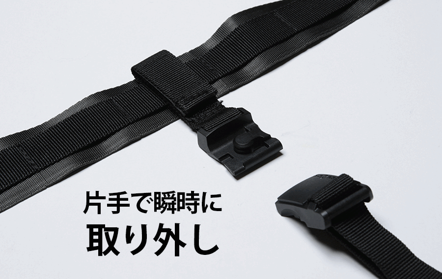 サブストラップにはFIDLOCKマグネットバックルを採用。片手で簡単に取り外しができます。