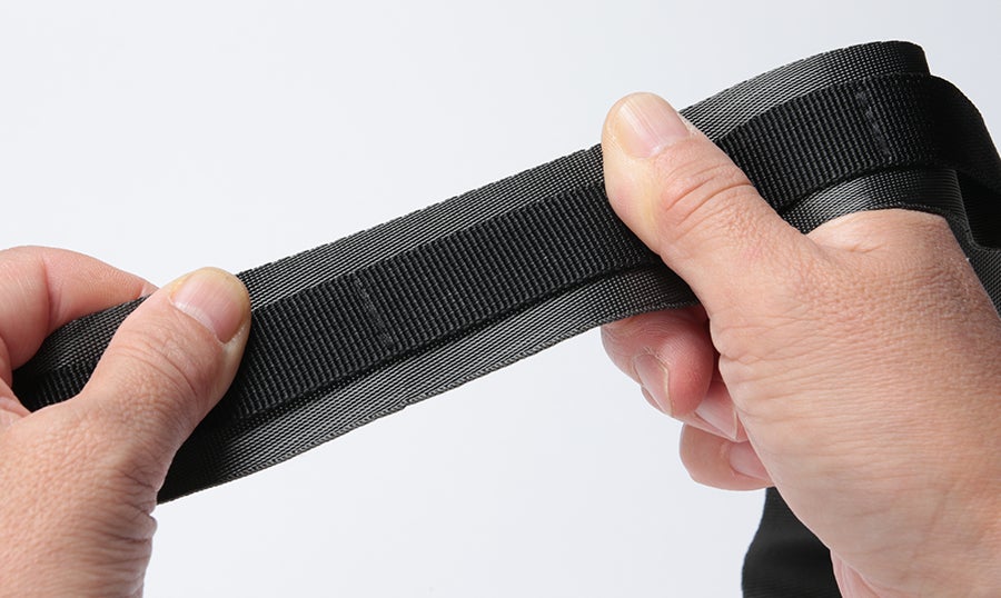 夏のライドで汗だくになってしまってもストラップ本体は洗濯が可能だから衛生的。洗濯の際は洗濯機ではなく、衣類用中性洗剤での手洗い、陰干しを推奨しています。