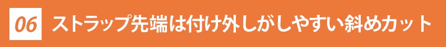 でも、ストラップ先端が斜めになっているだけでスムーズに付け外しが可能です。