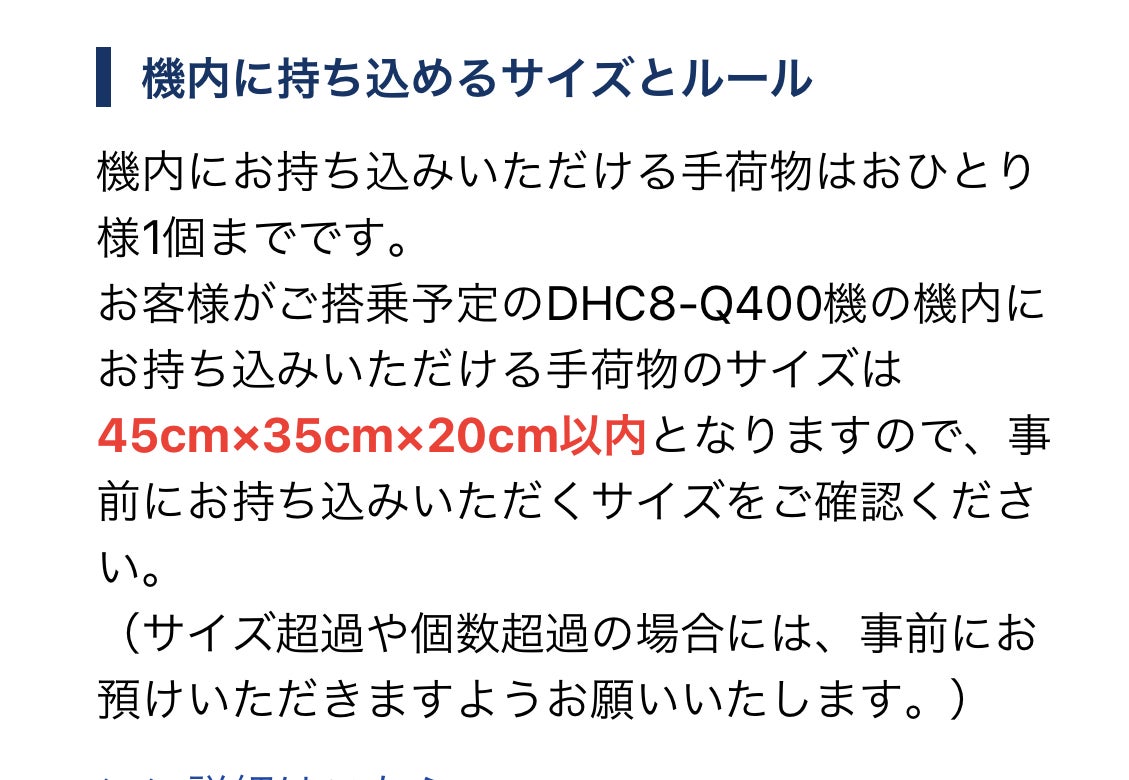 なんと!100人未満の飛行機は持ち込み荷物のサイズがひとまわり小さいのです