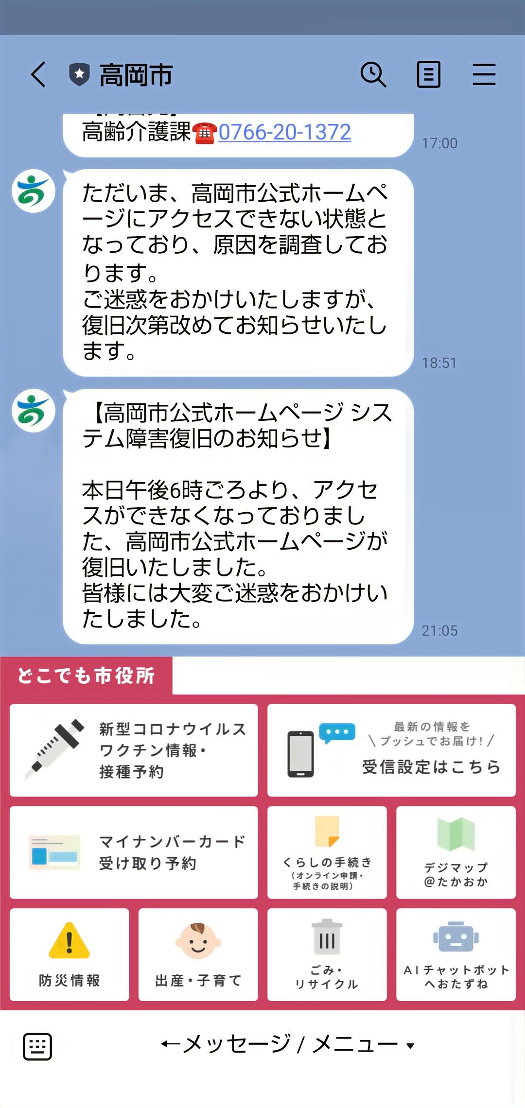2023/04/08 05:30高岡市ホームページ4月7日21時頃システム障害復旧したそうです。大変お騒がせいたしましたもう1つ告知を…立山連峰、室堂平「雪の大谷」もゴールデンウィーク中のお勧めスポットですバスで向かう途中の雪道が正に雪壁是非とも検索してみて下さい もっと見る高岡市ホームページが…