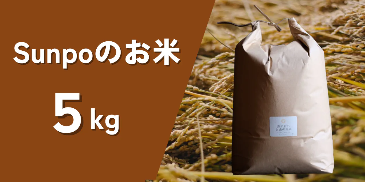 農薬、化学肥料、除草剤をいっさい使わず育てた暮らすファームsunpoのお米です。