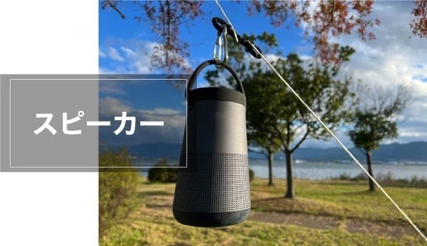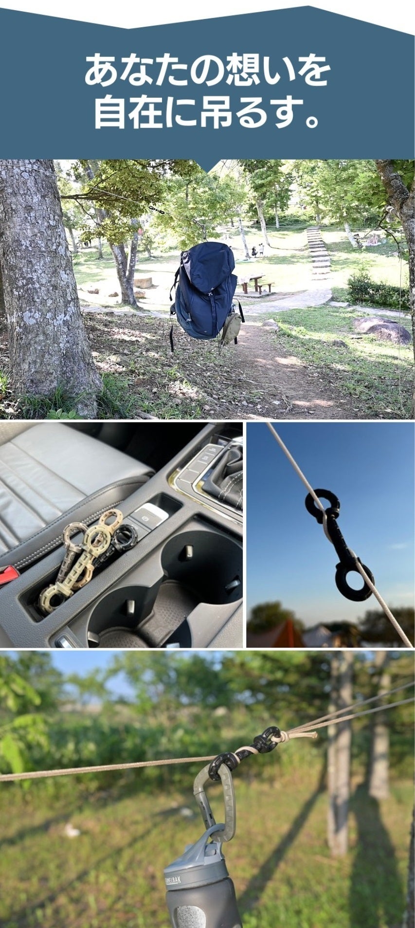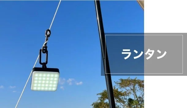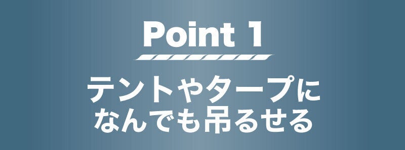 テントのロープにお気に入りのランタンやワイヤレススピーカーを吊るしたり、濡れたTシャツからカトラリーまで、なんでも自由に吊るせます。