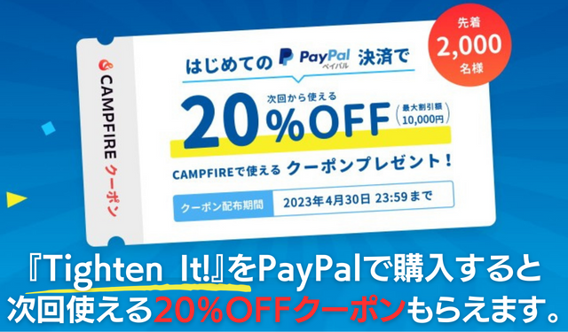 今『Tighten It!(タイトンイット)』をPayPalで購入すると次回使える20%OFFクーポンもらえます!