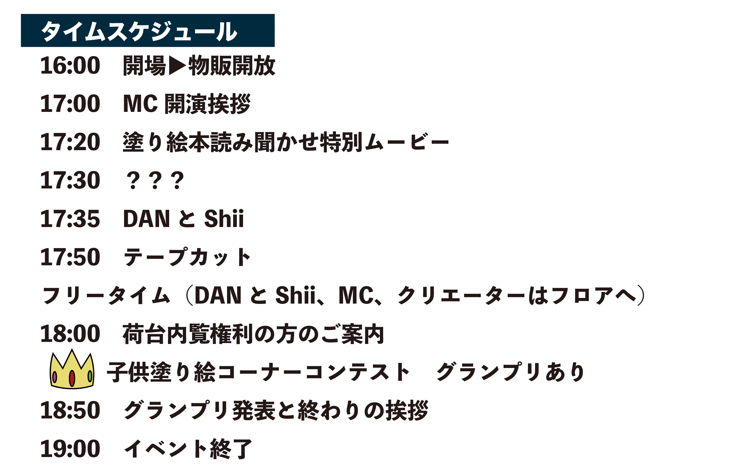 ・イベントスケジュールはタイムスケジュールをご覧ください。