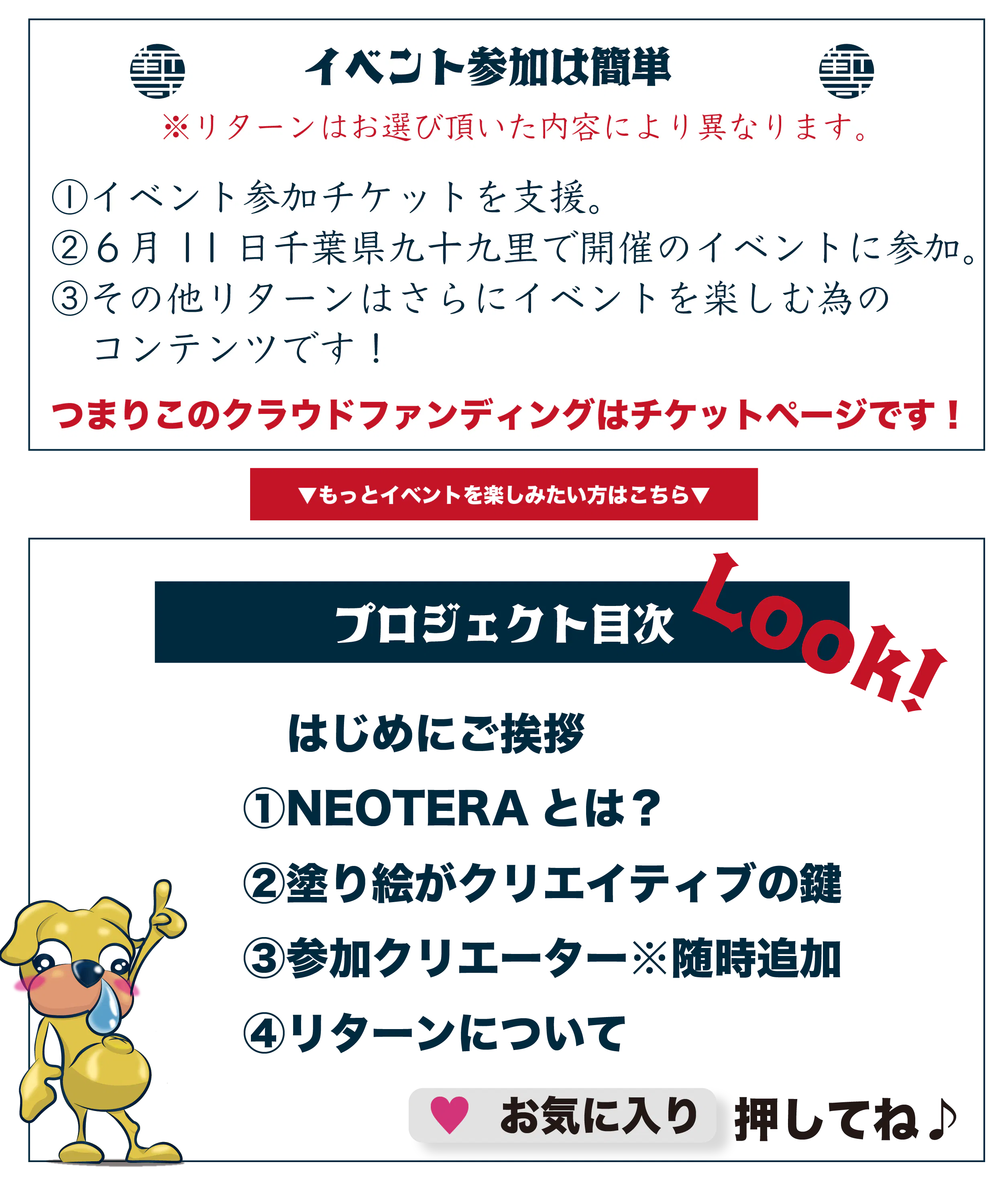・さらにお気に入りボタンを押していただけますとこのイベントについてや経過報告をリアルタイムで楽しんで頂けます。
