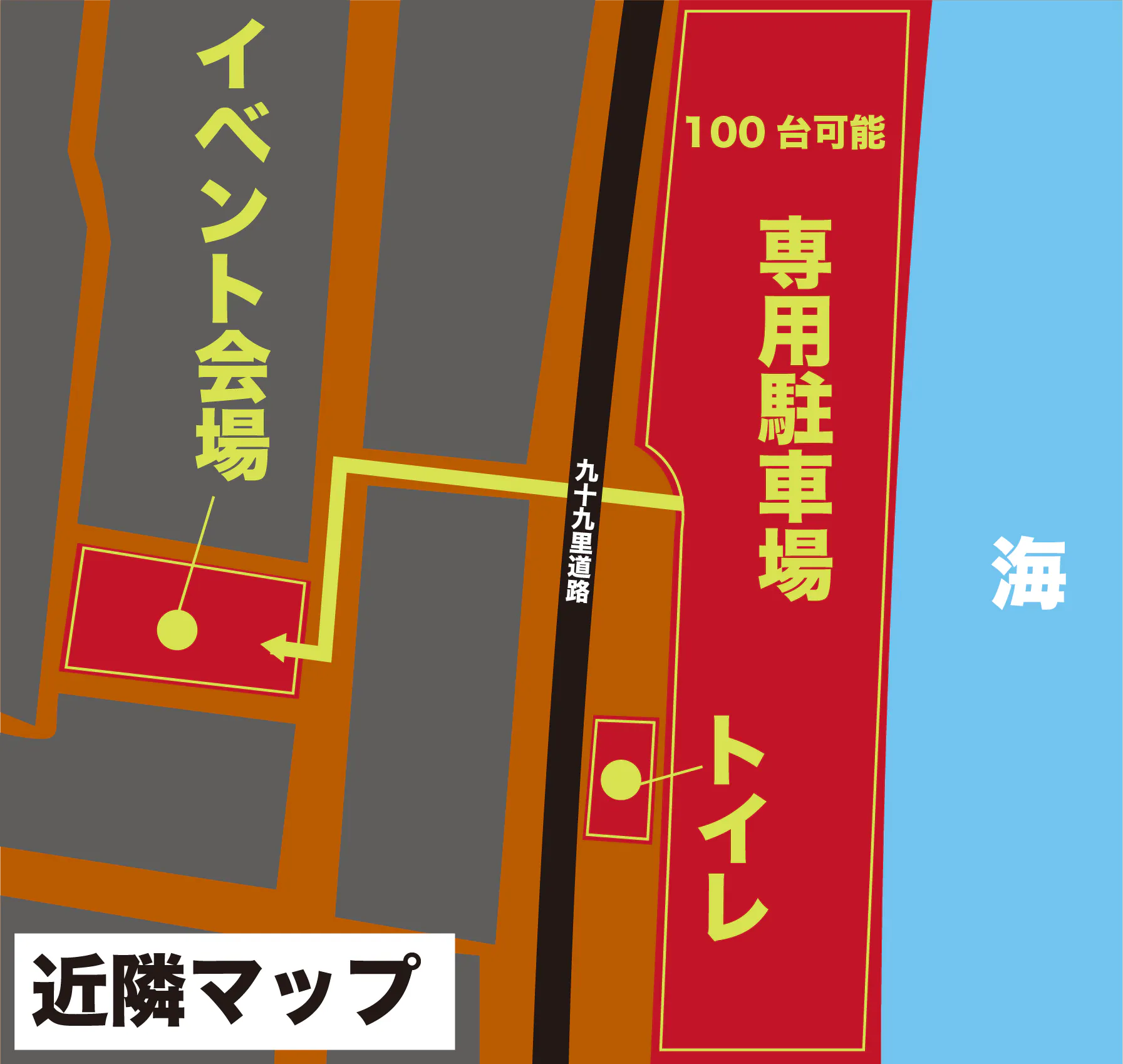 こちらは市に許可を得て当日専用の駐車場となりますので近隣でその他の駐車や迷惑になる行為はご遠慮下さいませ。