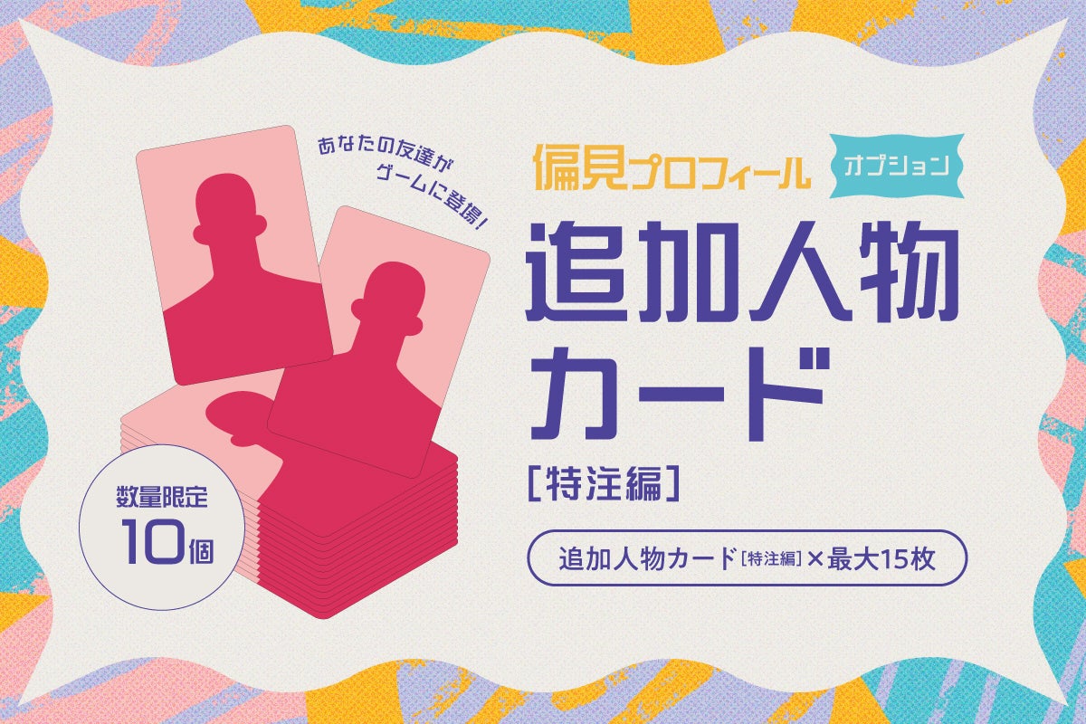 ☑ 『偏見プロフィール』シングルプラン・ダブルプランにお申込み頂いた方限定で、追加人物カード[特注編]最大15枚をお送りするプランです。
