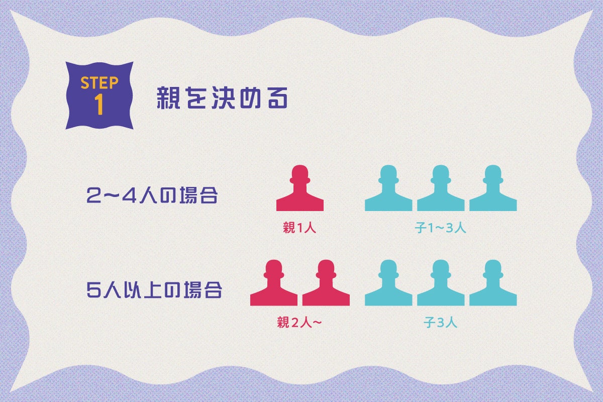 ※大人数でやる場合は、子プレイヤーを3人、それ以外全員親プレイヤーにするのがおすすめです!