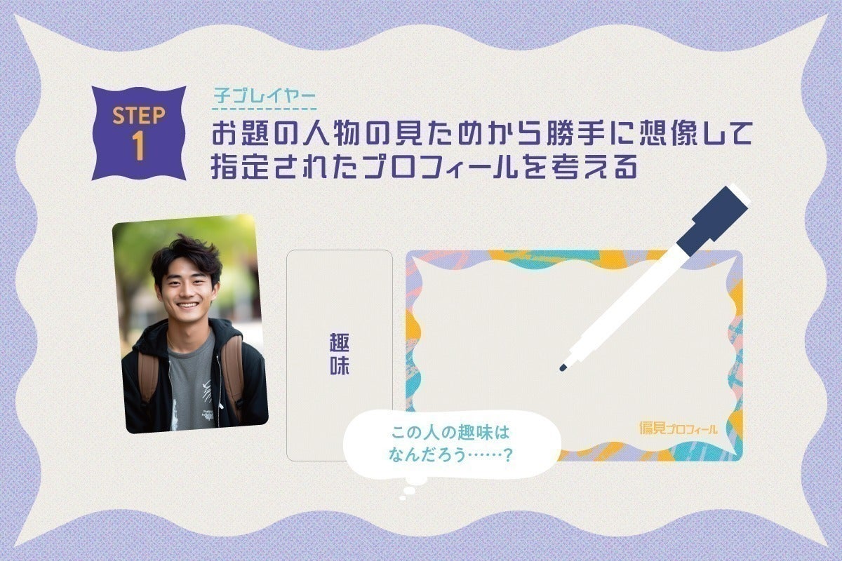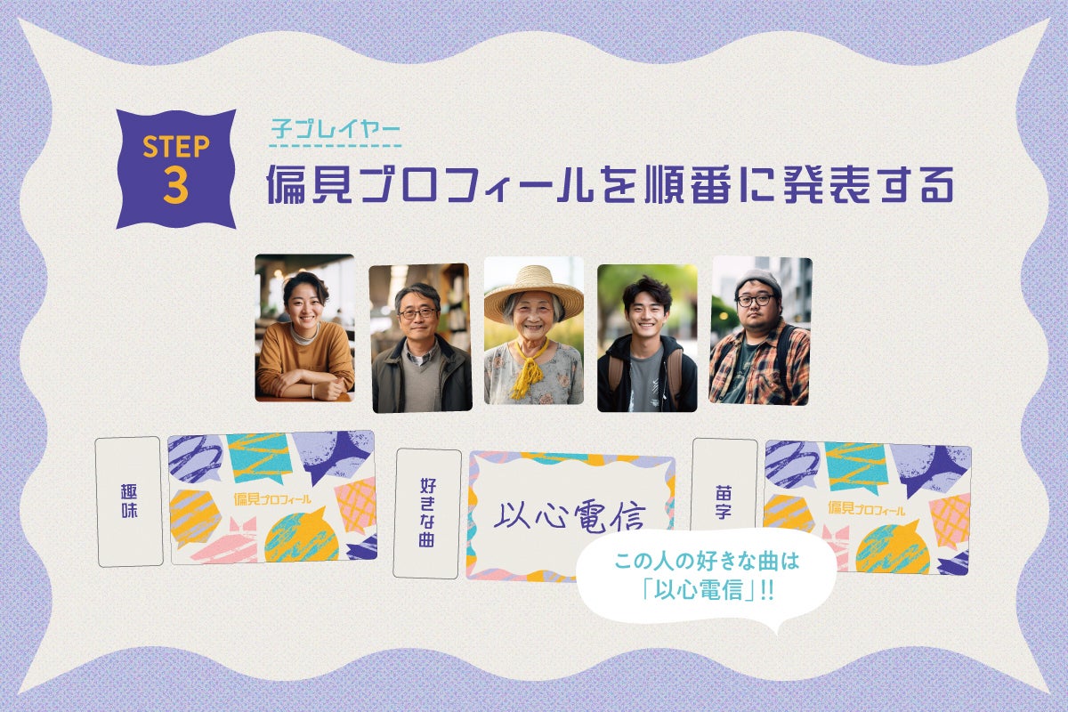 「人を見かけで判断しちゃいけません!」そう教えられて生きてきましたが、実際どうです?みなさん、多少は見ためからその人の趣味、性格など予想しちゃいますよね…?偏見プロフィールは、そんなタブーに踏み込んで偏見の一致を楽しむ、背徳系ボードゲームです!※すべてAIが作った実在しない人物なので、誰も傷つきません!ご心配なく!