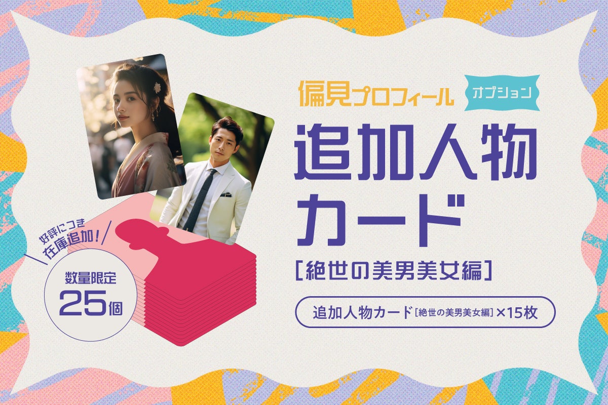 ☑ 『偏見プロフィール』シングルプラン・ダブルプランにお申込み頂いた方限定で、追加人物カード[絶世の美男美女編]15枚をお送りするプランです。