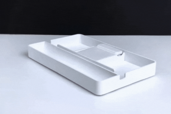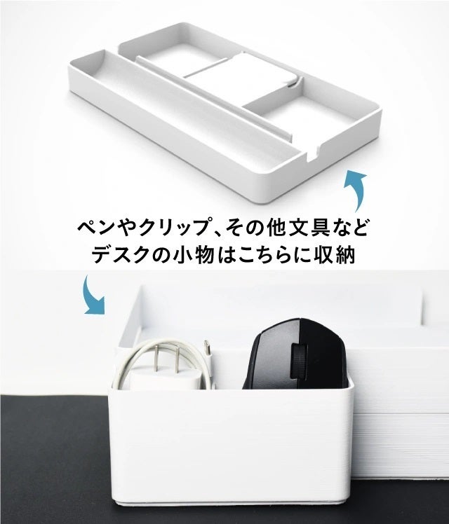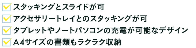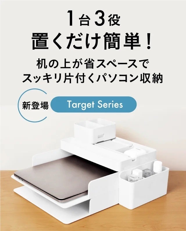 製品は一般的な机上収納ではなく、PCやタブレットなど家電のための革新的なデザイ